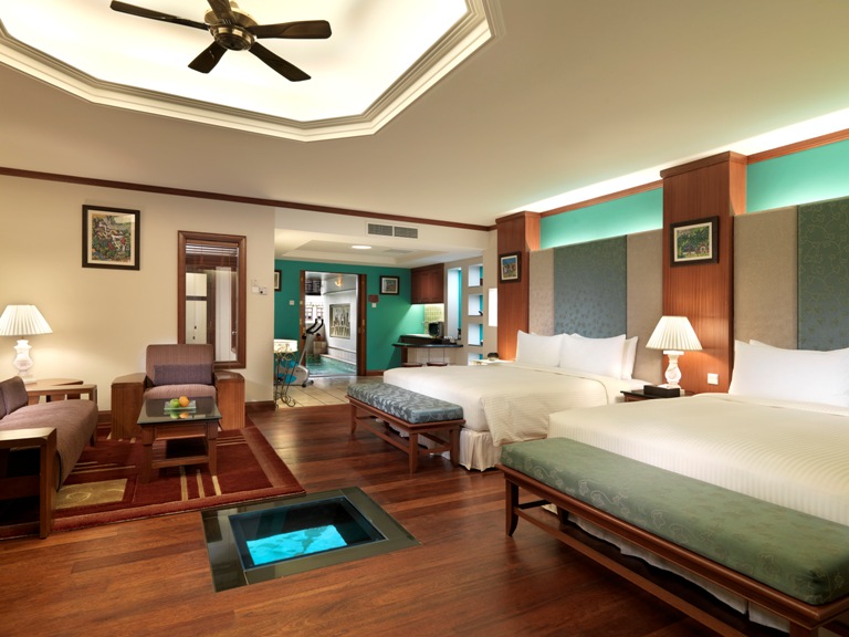 These Executive Pool Villas also features glass panel for underneath sea viewing, private swimming pool, kitchenette, separate bath and toilet, rain shower, hairdryer, mini fridge, and in-room safe box.