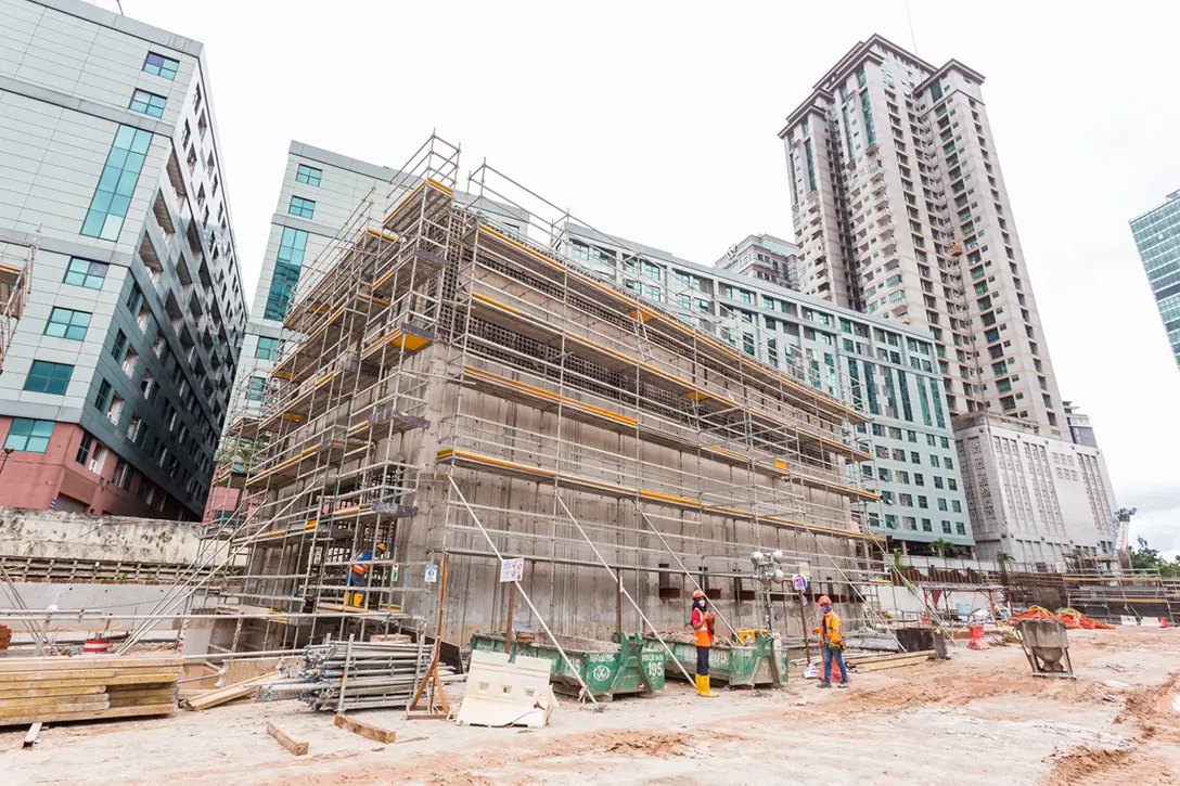 View of the Ampang Park MRT Station Entrance B construction in progress.