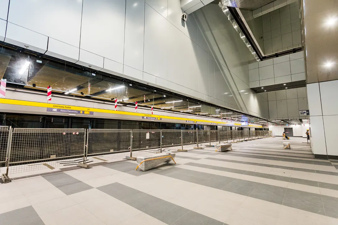 Architectural works completed at the Ampang Park MRT Station upper concourse level.