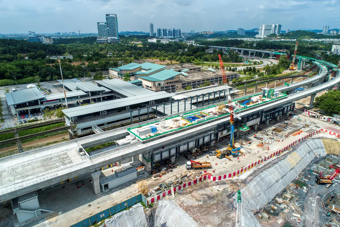 Aerial view of the completed works for launching segmental box girder at the Putrajaya Sentral MRT Station site.