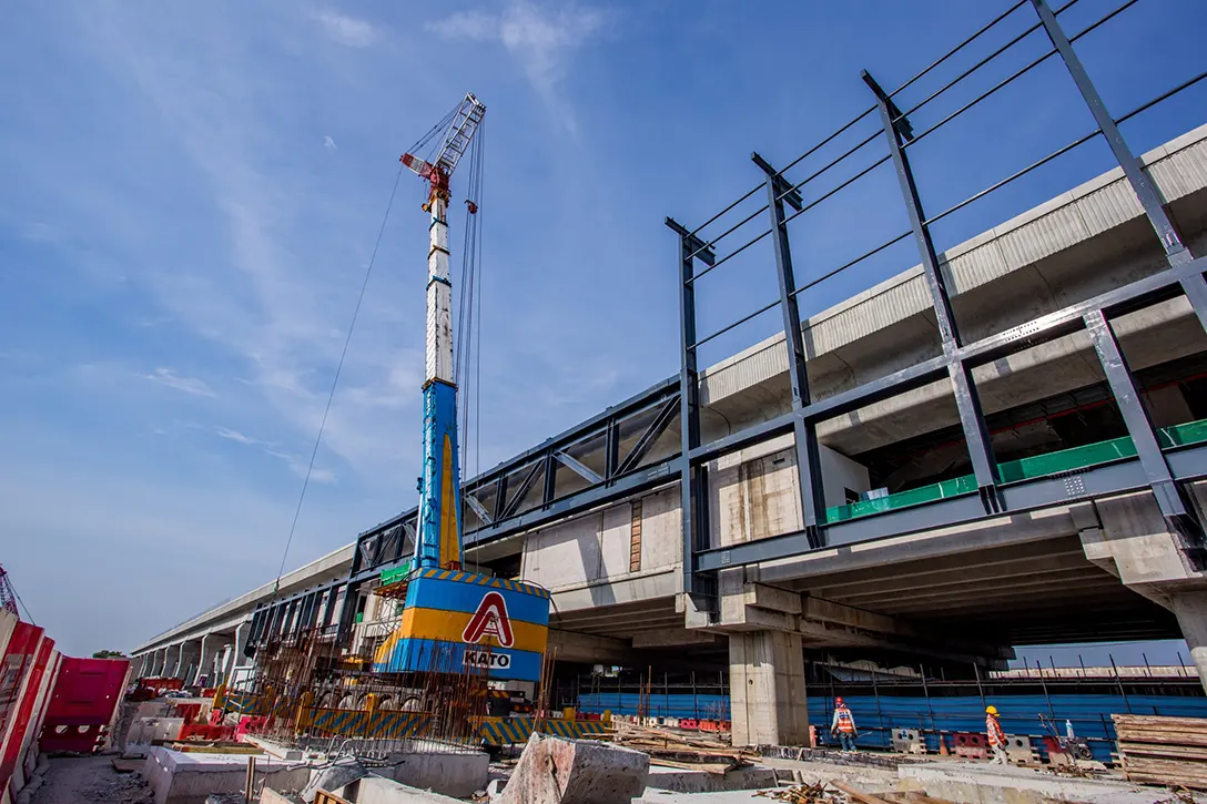 Segmental box girder erection works in progress at the Putrajaya Sentral MRT Station site.
