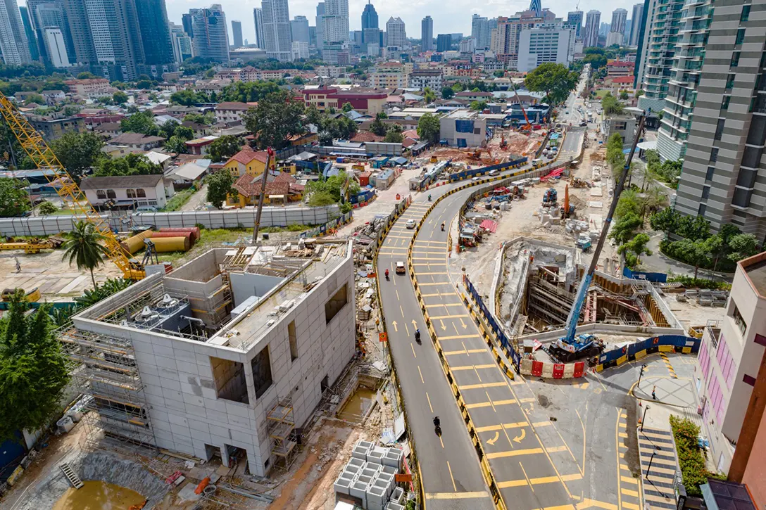 Overall view of rapid construction works in progress at the Raja Uda MRT Station, in front of Setia Sky Residence.